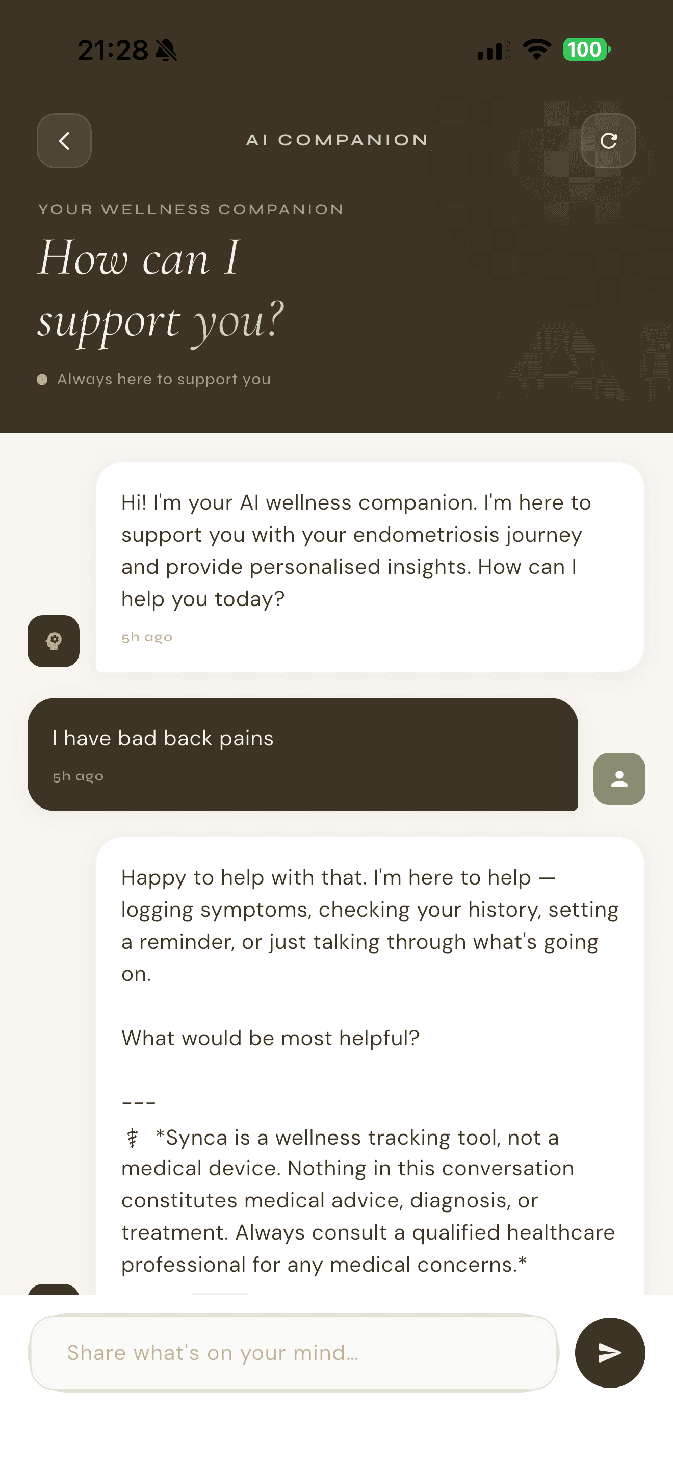 Track symptoms, prepare for appointments, and get personalised support for managing endometriosis.