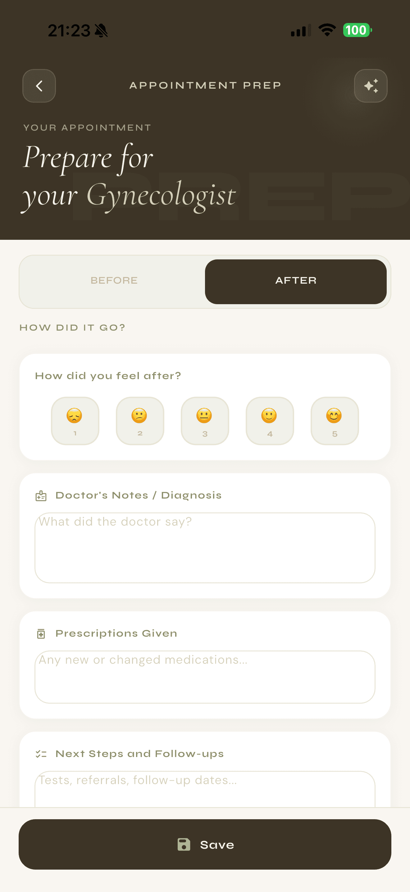 Track medications, manage appointments, and monitor your cycle—all designed to help you stay informed and in control.